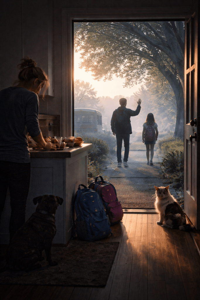 The routine remains — work, school, animals, two houses, hospital.