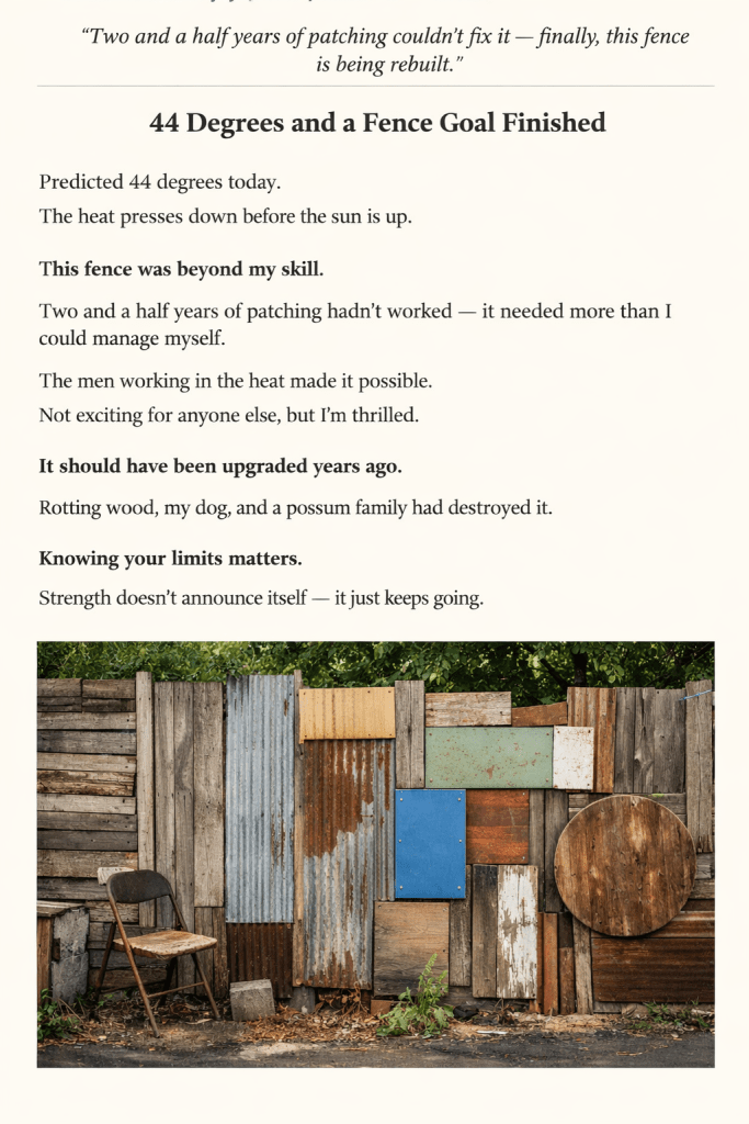 44 Degrees and a Fence Goal Finished
